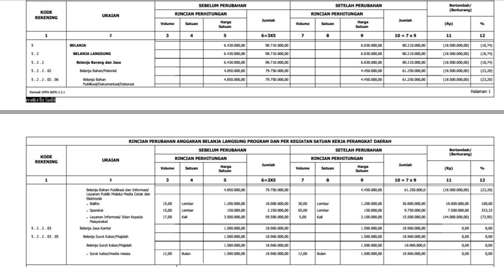 | PAGU BELANJA LANGSUNG OPD | ANGGARAN PPID/ MEDIA INFORMASI | PRESENTASE |