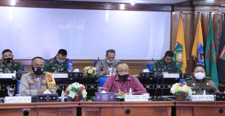 “Disitu akan terjadi kerawanan – kerawanan yang harus kita antisipasi yang mungkin tidak kondusif atau tidak sejalan dengan kebijakan pokok Pemerintah pada saat ini, yaitu protokol kesehatan,” kata Mahfud MD saat memberi arahan dalam Rapat Koordinasi Antisipasi Libur Panjang Cuti yang dikuti oleh Sekretaris Daerah Provinsi NTB, Drs. H. Lalu Gita Ariadi, M.Si., bersama unsur anggota Forkompinda Provinsi NTB di Ruang Rapat Utama (RRU) Kantor Gubernur NTB, Kamis (22/10/2020).