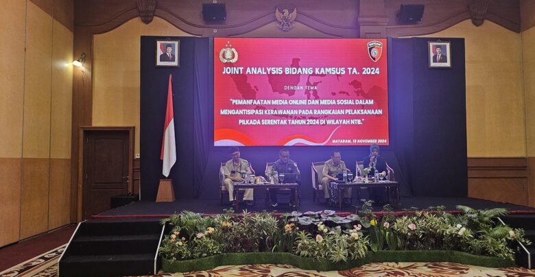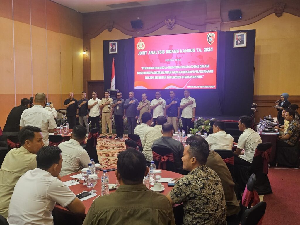 Kepala Badan Kesbangpoldagri NTB menghadiri undangan POLDA NTB sebgai Narasumber pada acara JOINT ANALYSIS BIDANG KAMSUS TA.2024 dengan tema “Pemanfaatan Media Online dan Media Sosial dalam Mengantisipasi Kerawanan Pada Rangkaian Pelaksanaan PILKADA Serentak Tahun 2024 di Wilayah NTB”, bertempat di Hotel Lombok Raya.