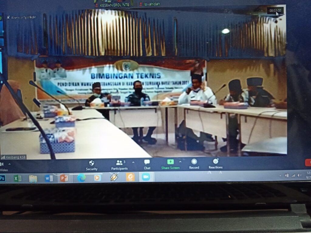 Kepala Bakesbangpoldagri Provinsi NTB sebagai narasumber, mengisi materi secara Daring melalui Zoom Meeting yang diwakili oleh Kepala Bidang Ideologi, Wawasan Kebangsaan dan Karakter Bangsa, Drs. Sufyan.